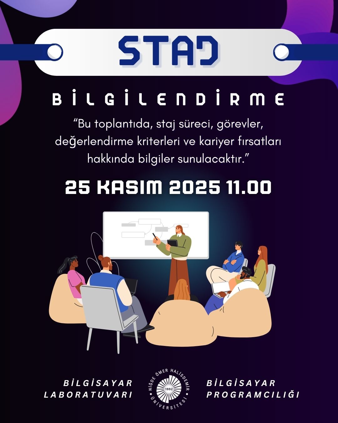 Bölümümüz staj komisyonunda yer alan öğretim elemanlarının katılımıyla, 25 Kasım 2025 tarihinde saat 11:00’da Bilgisayar Laboratuvarında öğrencilerimize yönelik bilgilendirme toplantısı yapılmıştır.