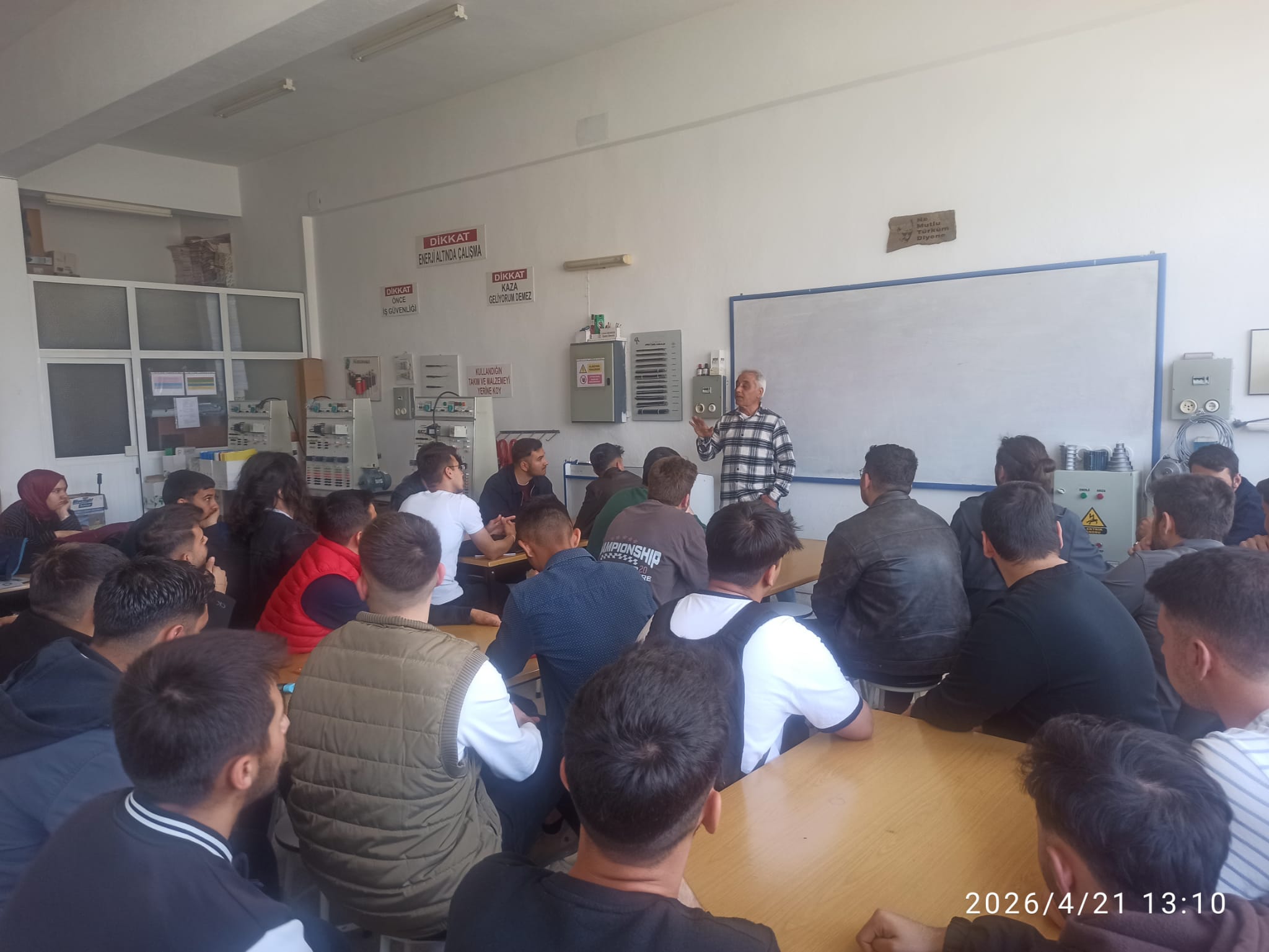 Bölümümüz Elektrik Programında öğrenim gören öğrencilerimizin motivasyonlarını arttırmak için piyasada çalışan ve programımız alanında uzman olan kişi olan Ahmet TURGUT (aynı zamanda mezun eski öğrencimiz-2018) tarafından bilgilendirme ve eğitim amaçlı toplantı yapıldı.