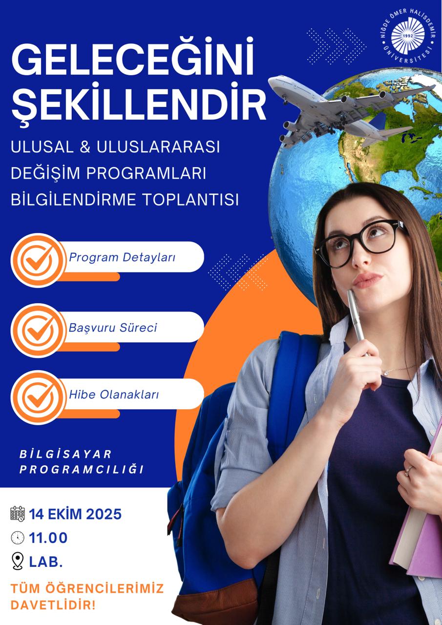 An information meeting was held in our department to inform students about national and international exchange programs. During the event, detailed information was shared about the scope, application requirements, evaluation processes, and academic opportunities offered by exchange programs such as Erasmus, Farabi, and Mevlana. In addition, examples from the experiences of students who had previously participated in these programs were presented, highlighting important points to consider during the application process. The meeting aimed to increase students’ interest in exchange programs and to raise awareness about gaining international academic experience.