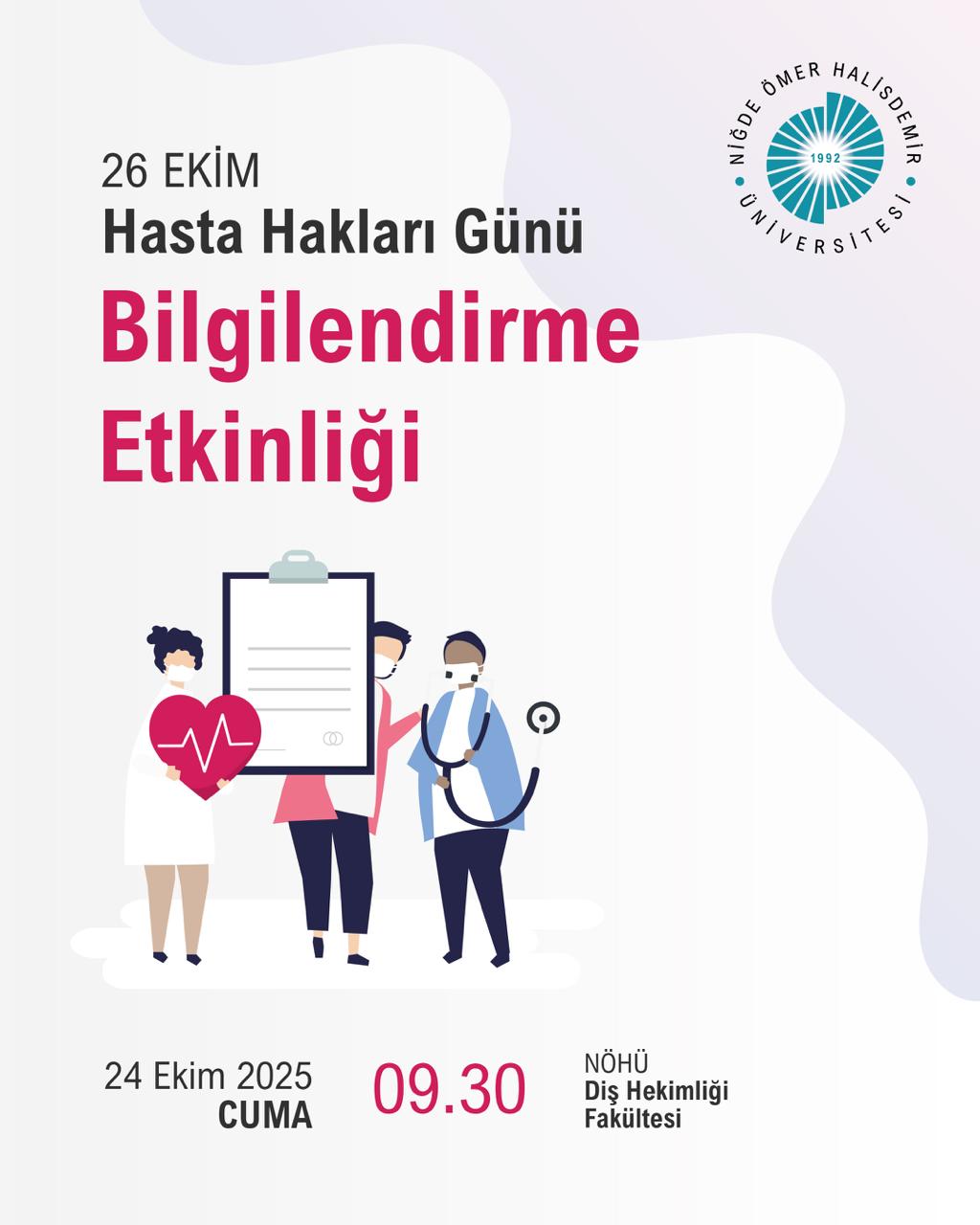 Hasta Hakları Günü Bilgilendirme Etkinliği Etkinlik Ayrıntıları Etkinlik Adı: Hasta Hakları Günü Bilgilendirme Etkinliği Etkinlik Tarihi: 26.10.2025 - 26.10.2025 / 09:30 Etkinlik Türü: Konferans Etkinlik Yeri: Son Güncelleme Tarihi : 23.10.2025