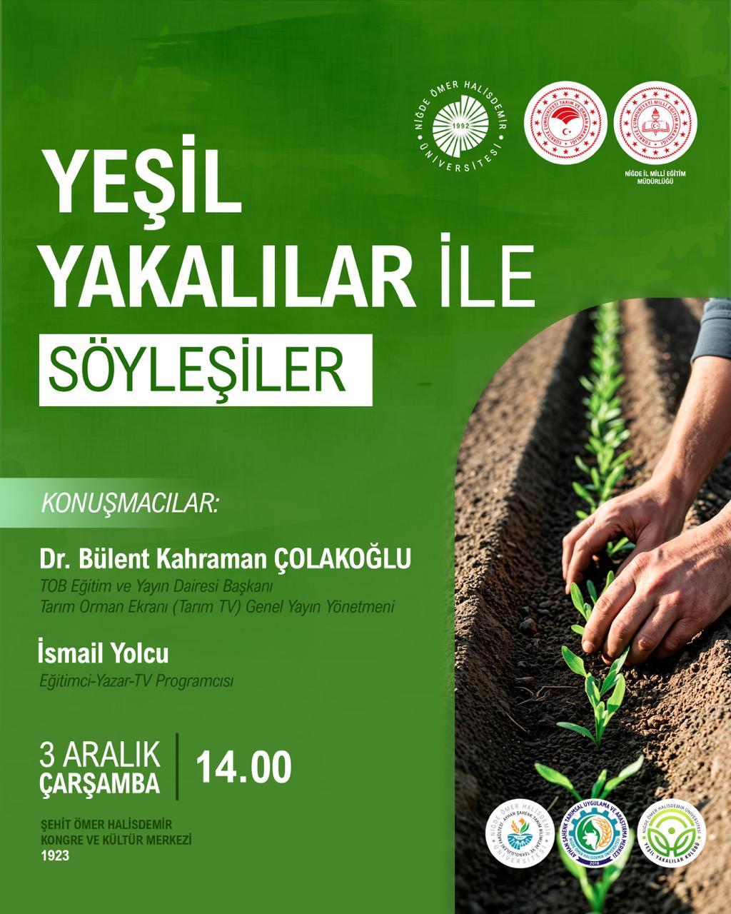 Yeşil Yakalılar İle Söyleşiler Etkinlik Ayrıntıları Etkinlik Adı: Yeşil Yakalılar İle Söyleşiler Etkinlik Tarihi: 03.12.2025 - 03.12.2025 / 14:00 Etkinlik Türü: Söyleşi Etkinlik Yeri: Son Güncelleme Tarihi : 02.12.2025