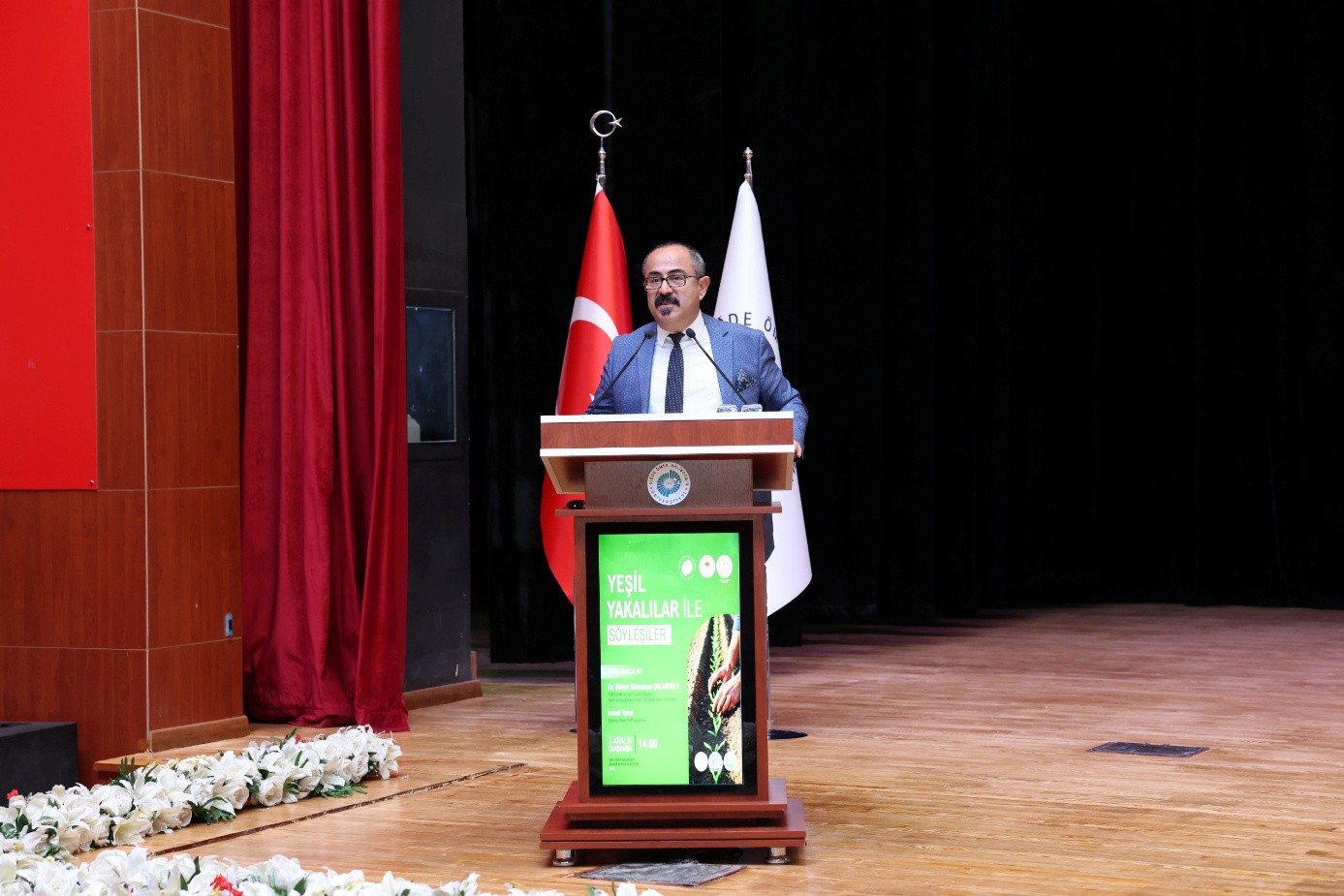 The program, held at the Martyr Ömer Halisdemir Congress and Culture Center, was attended by our Rector Prof. Dr. Hasan Uslu, Dr. Bülent Kahraman Çolakoğlu, Niğde Provincial Director of Agriculture and Forestry Furkan Mete, Dean of Agricultural Sciences and Technologies Prof. Dr. Ahmet Şekeroğlu, Çankaya University Communication Coordinator İsmail Yolcu, and numerous students from our university's academic and administrative staff.