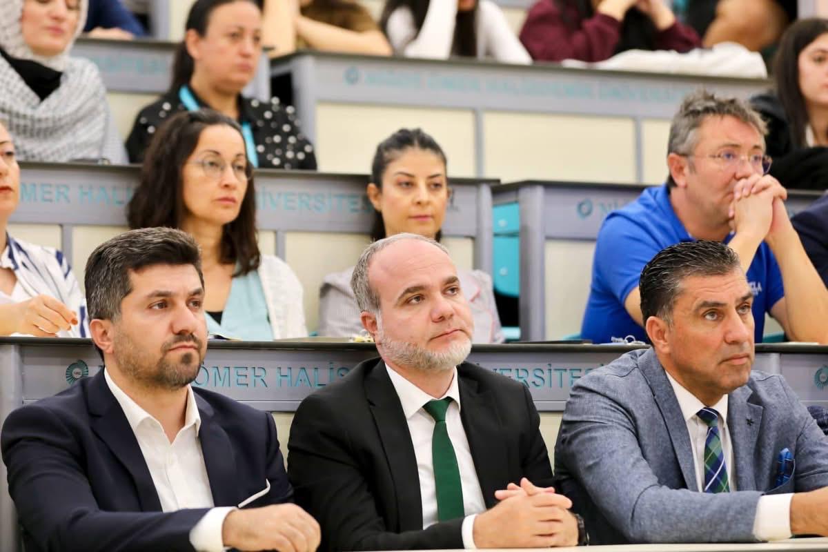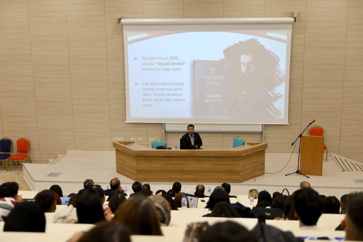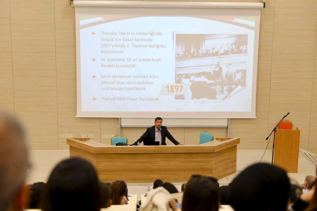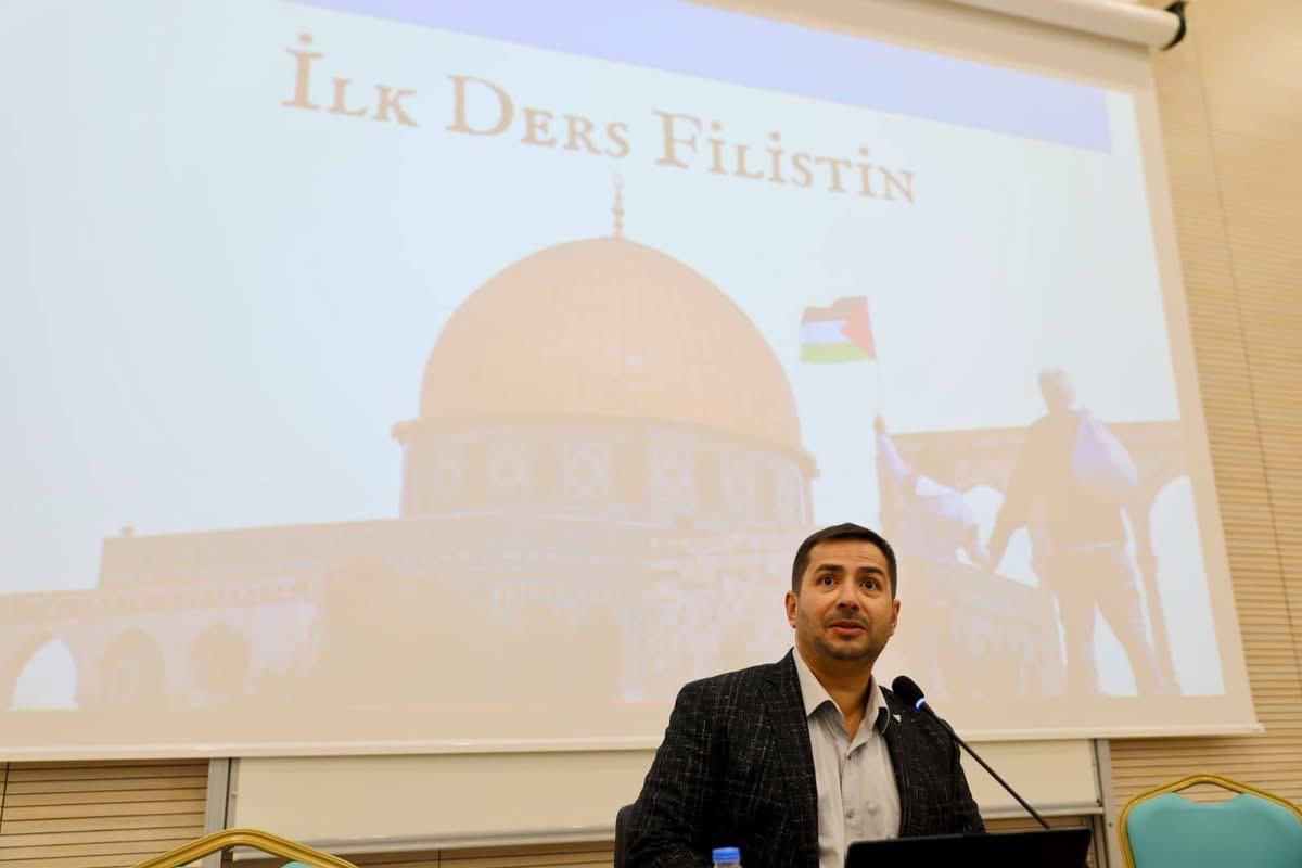 To mark the start of the 2025-2026 academic year, our faculty hosted a program titled "First Lesson: Palestine," a meaningful and timely topic. Held in Amphi-6, the event, Head of our Faculty's Public Administration Department, Assoc. Prof. Dr. Abdullah AYDIN, addressed the historical background of Palestine's struggle for independence, including its implications for international law and human rights. The event was supported by our Rector, Prof. Dr. Hasan USLU, and our Dean, Prof. Dr. Mutlu Başaran ÖZTÜRK, as well as numerous academics and students.