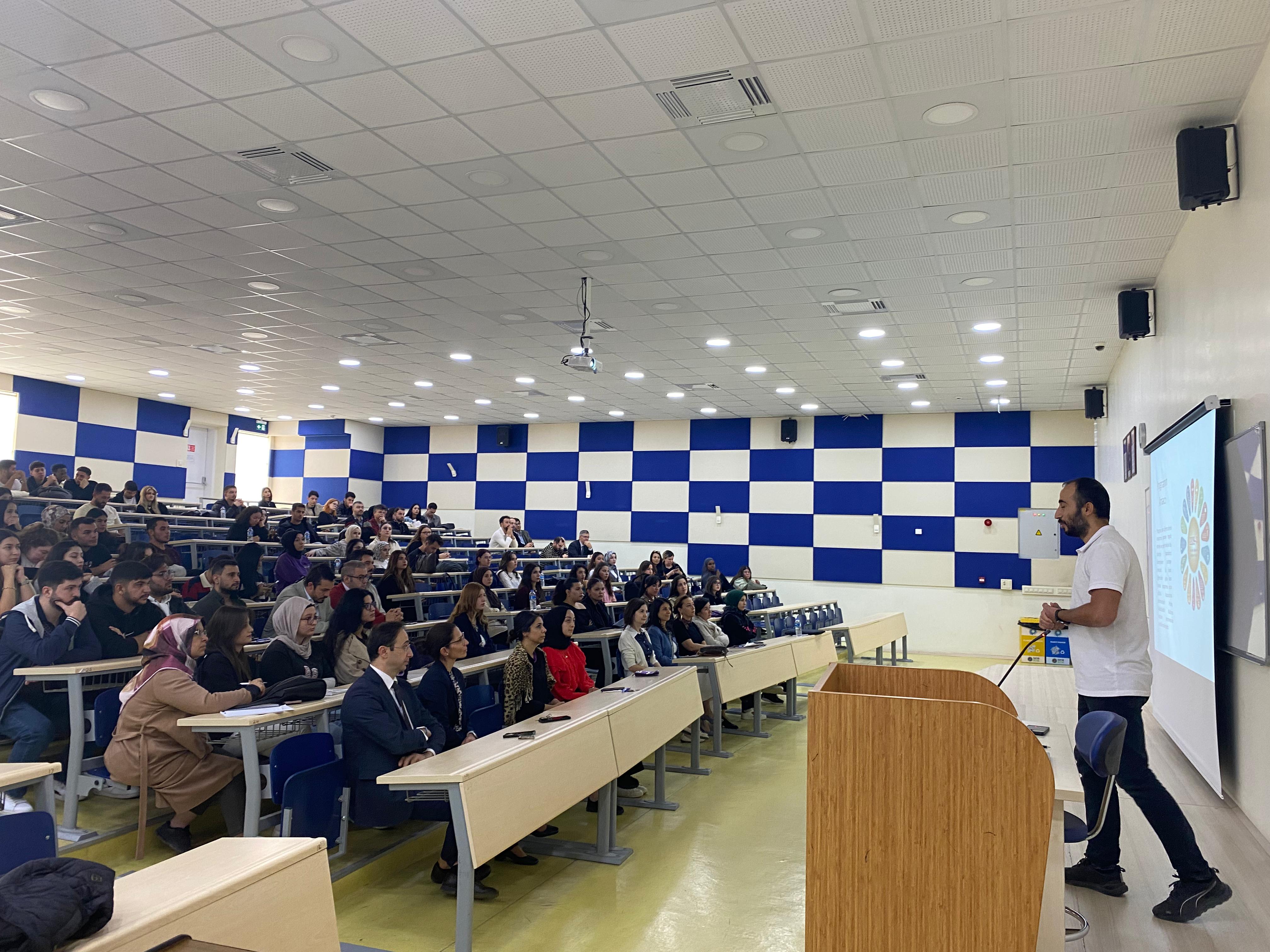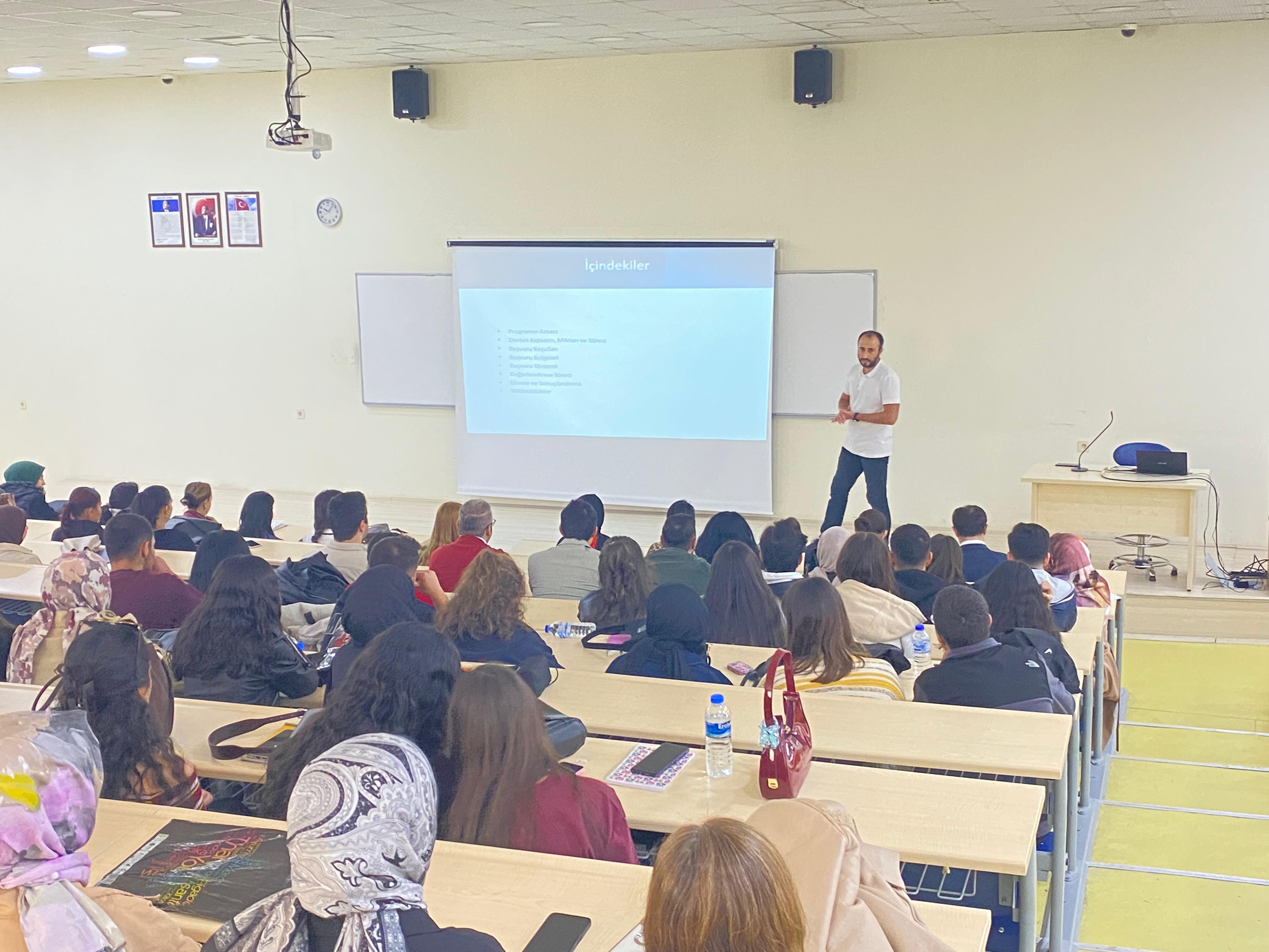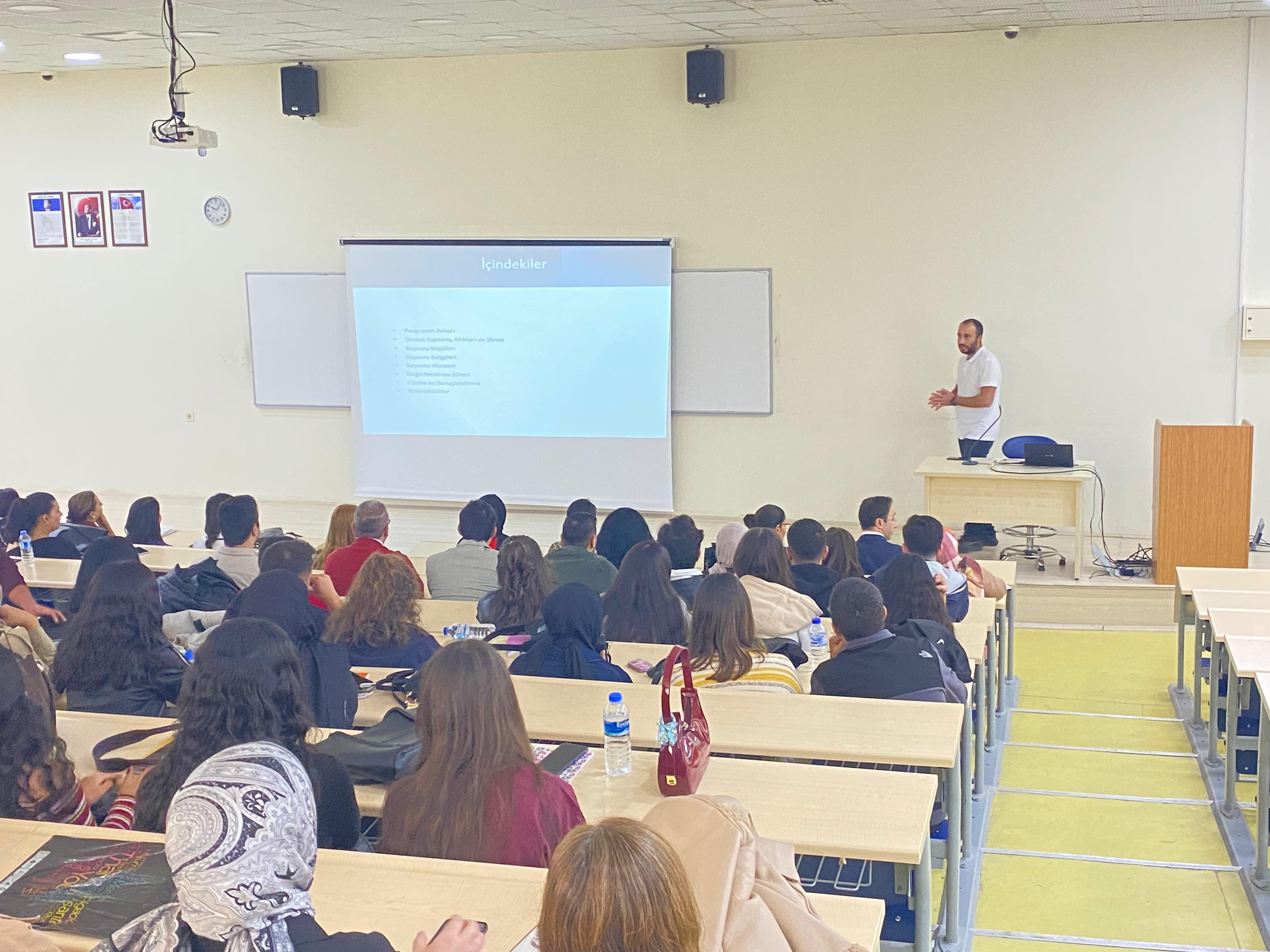 An informational meeting regarding 2209-A and 2209-B University Student Research Projects was held at our faculty on October 23, 2025. Our academics and students attended the meeting, which was presented by Associate Professor Dr. Ahmet Şakir DOKUZ, a faculty member in our university's Faculty of Engineering.