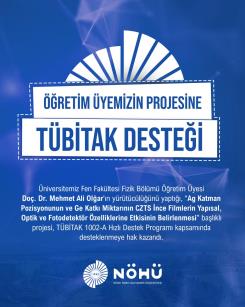 Üniversitemiz Fen Fakültesi Fizik Bölümü Öğretim Üyesi Doç. Dr. Mehmet Ali Olğar'ın yürütücülüğünü yaptığı, “Ag Katman Pozisyonunun ve Ge Katkı Miktarının CZTS İnce Filmlerin Yapısal, Optik ve Fotodetektör Özelliklerine Etkisinin Belirlenmesi” başlıklı projesi, TÜBİTAK 1002-A Hızlı Destek Programı kapsamında desteklenmeye hak kazandı.
