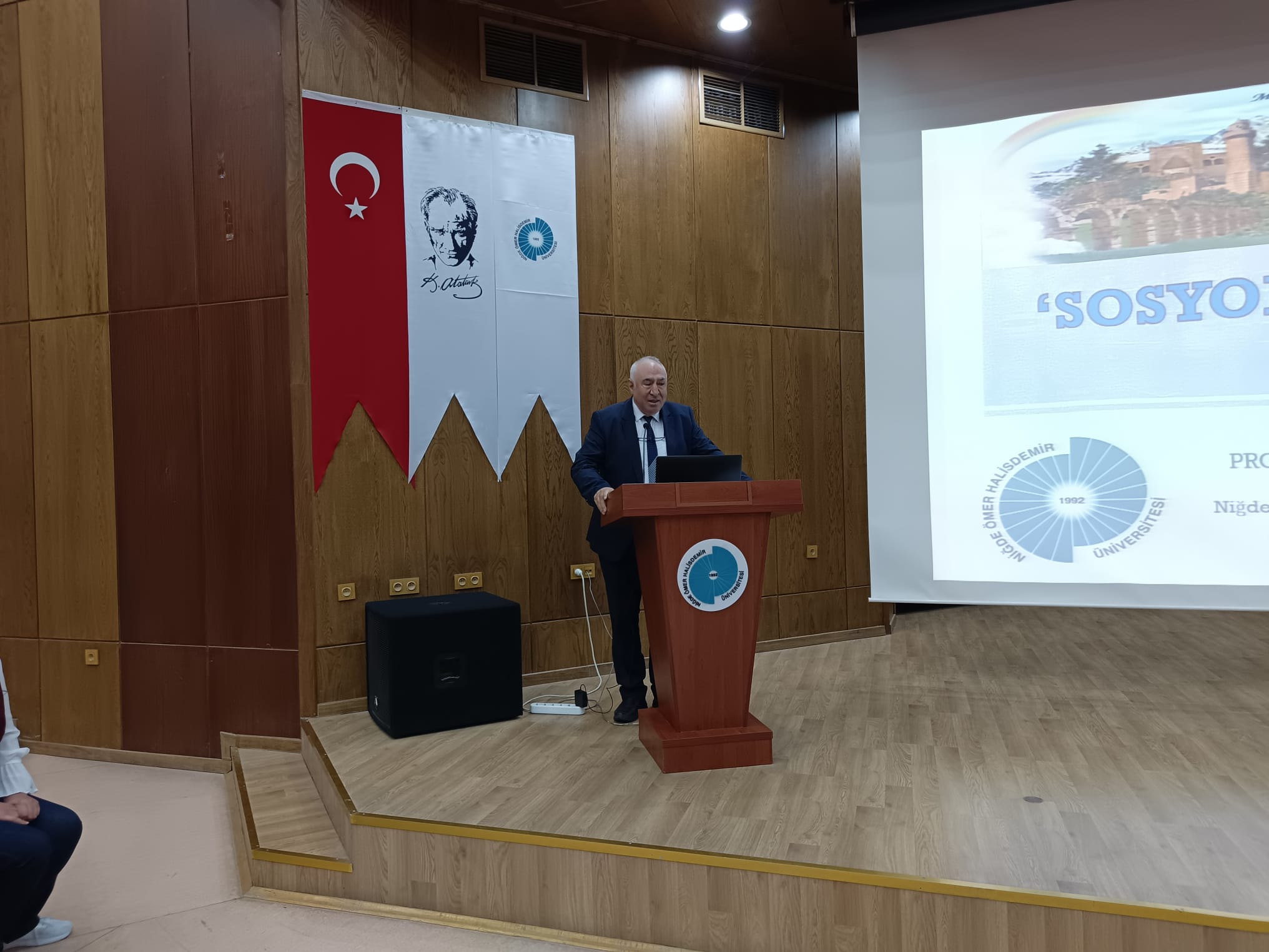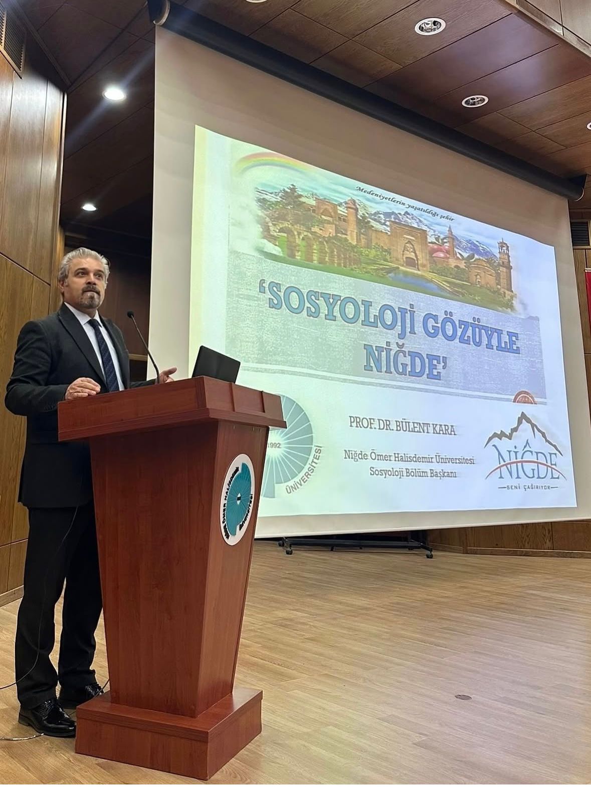 Prof. Dr. Bülent KARA "Sosyoloji Gözüyle Niğde" Konferansı Etkinlik Ayrıntıları Etkinlik Adı: Prof. Dr. Bülent KARA "Sosyoloji Gözüyle Niğde" Konferansı Etkinlik Tarihi: 20.04.2026 - 04.09.2027 Etkinlik Türü: Konferans Sosyoloji bölüm başkanı Prof. Dr. Bülent KARA "Sosyoloji Gözüyle Niğde" Konferansı İnsan ve Toplum Bilimleri Fakültesi konferans salonunda gerçekleşmiştir. Son Güncelleme Tarihi : 24.04.2026