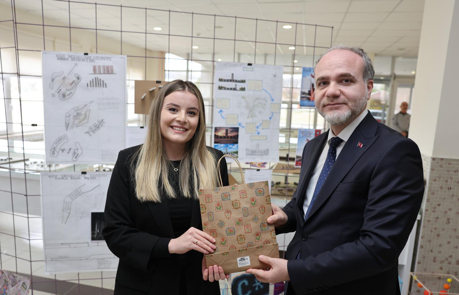 Bu başlık altında öğrenciler, fakülte yapısını işlev, mekânsal organizasyon, sosyal alanlar ve sürdürülebilirlik kriterleri çerçevesinde yeniden ele aldı. Eğitim mekânlarının esnekliği ve kullanıcı deneyimi tasarım önerilerinde belirleyici oldu. - Kent Mobilyası ve Üst Örtü Tasarımı – Niğde Ömer Halisdemir Üniversitesi Mimarlık Fakültesi Önü: