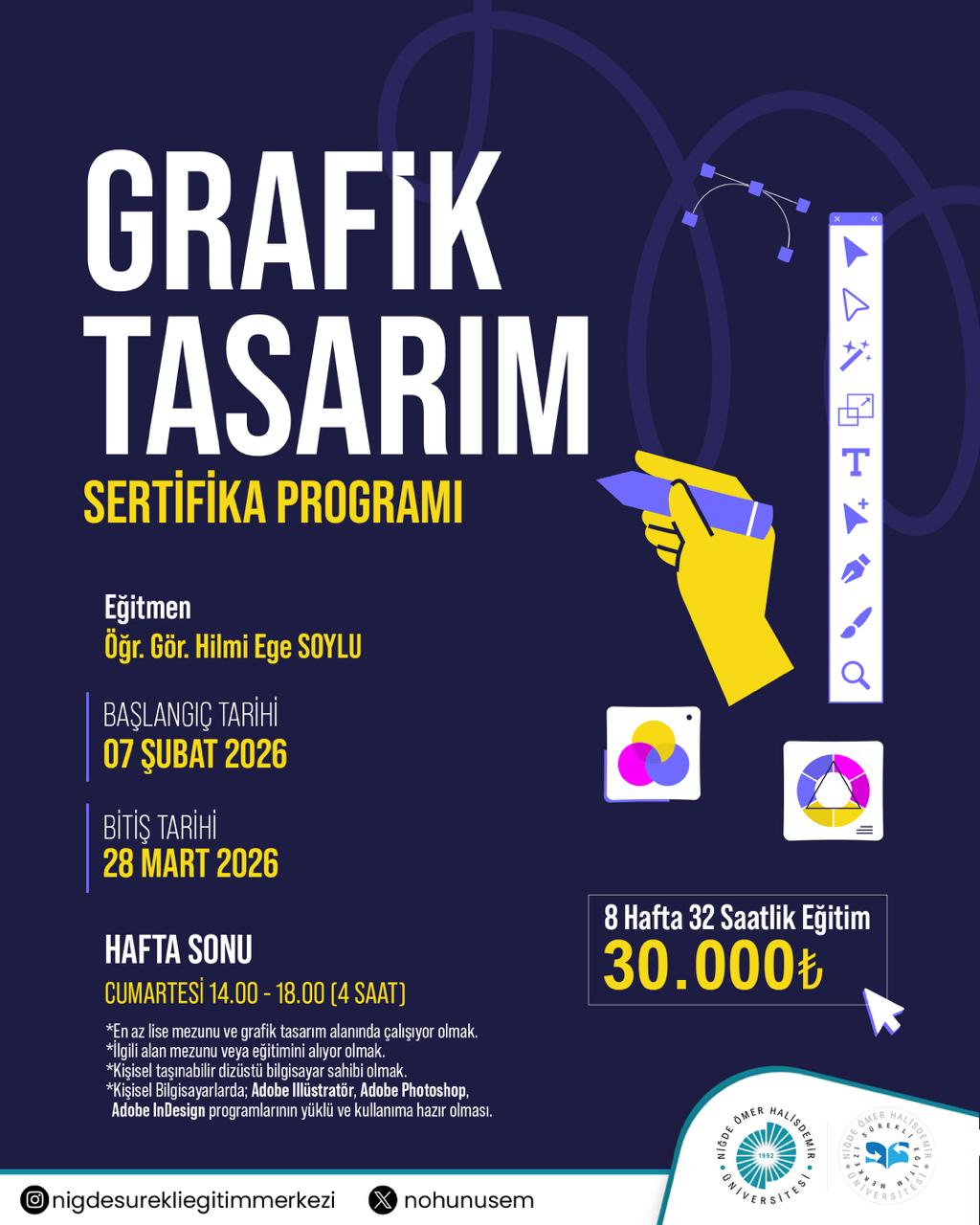 GRAFİK TASARIM SERTİFİKA PROGRAMI Duyurular 22.12.2025 GRAFİK TASARIM SERTİFİKA PROGRAMIONLİNE KAYIT İÇİN TIKLAYINIZ. Son Güncelleme Tarihi : 22.12.2025
