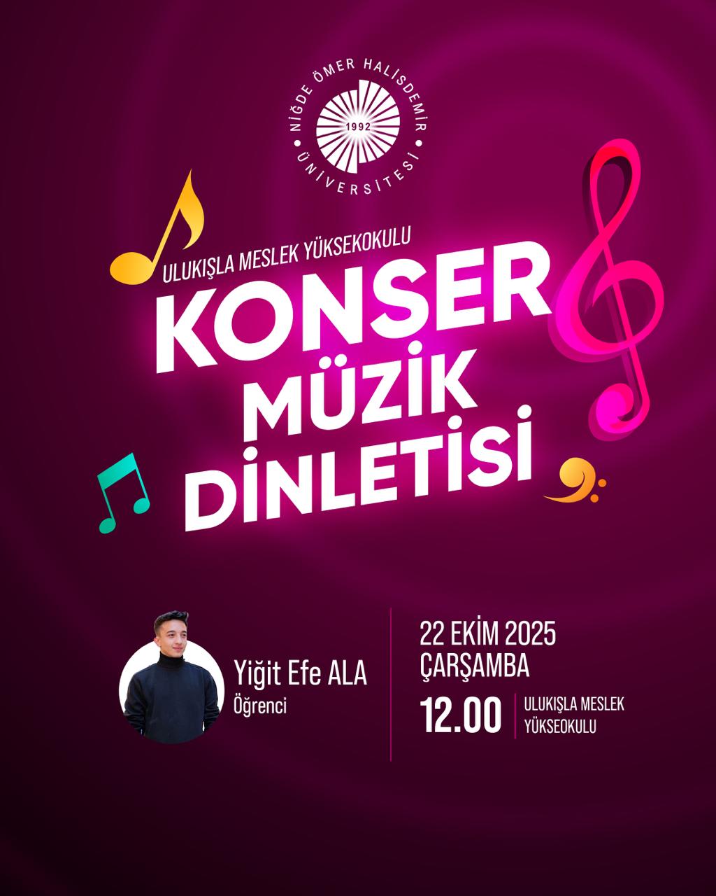 Konser Müzik Dinletisi Etkinlik Ayrıntıları Etkinlik Adı: Konser Müzik Dinletisi Etkinlik Tarihi: 22.10.2025 - 22.10.2032 Etkinlik Türü: Konser Son Güncelleme Tarihi : 17.10.2025