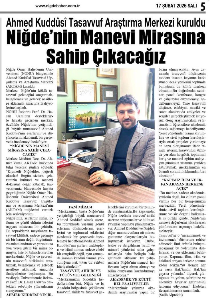 Ahmed Kuddûsî Tasavvuf Uygulama ve Araştırma Merkezi (AKTAM) Basında Duyurular 17.02.2026 Son Güncelleme Tarihi : 25.02.2026