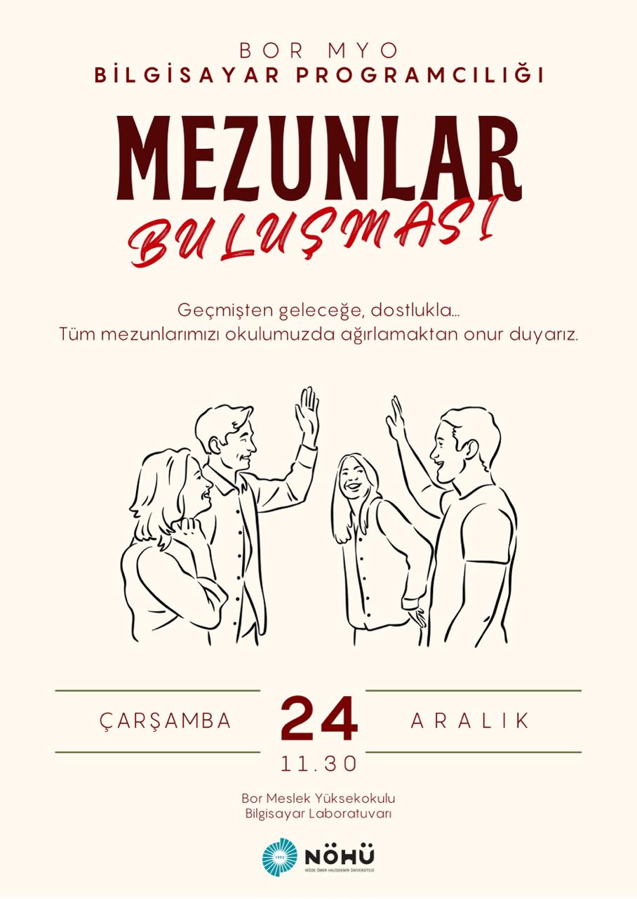 Mezun Buluşması, 24 Aralık 2025 Çarşamba günü saat 11.30’da, bölümümüz Bilgisayar Laboratuvarında yüz yüze olarak gerçekleştirildi. Etkinliğe bölüm öğretim elemanlarımız, geçmiş yıllarda bölümümüzden mezun olan öğrencilerimiz ile 2025–2026 eğitim öğretim yılında 1. ve 2. sınıfta öğrenim gören öğrencilerimiz katılım sağladı.