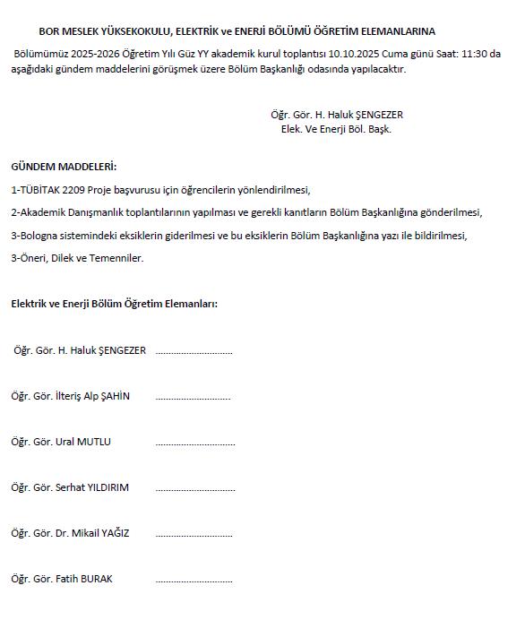 The Academic Board Meeting for the Fall Semester of the 2025-2026 Academic Year was held. Announcements 10.10.2025 Our Department Academic Board meeting for the 2025-2026 Academic Year, Fall Semester, has been held. Latest Update : 07.01.2026