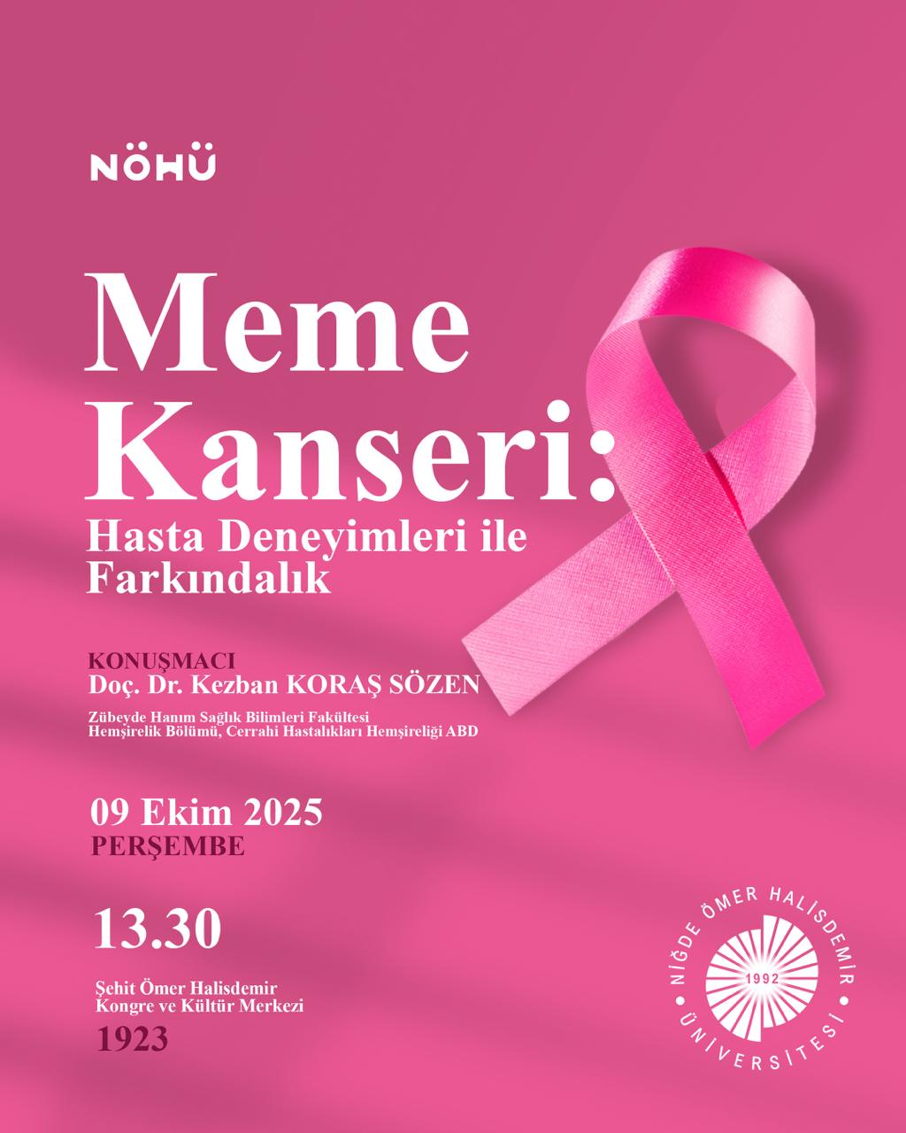 Meme Kanseri: Hasta Deneyimleri ile Farkındalık Etkinlik Ayrıntıları Etkinlik Adı: Meme Kanseri: Hasta Deneyimleri ile Farkındalık Etkinlik Tarihi: 09.10.2025 - 09.10.2025 / 13:30 Etkinlik Türü: Konferans Etkinlik Yeri: Şehit Ömer Halisdemir Kongre ve Kültür Merkezi Salon 1923 Son Güncelleme Tarihi : 07.10.2025
