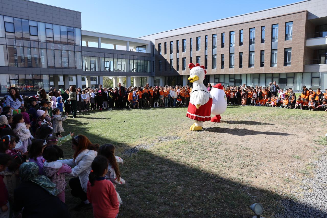 Etkinlik kapsamında, öğrenciler tavuk ve civciv maskotlarının gerçekleştirdiği yumurtayı tanıtıcı eğlenceli gösterilerle keyifli anlar yaşarken, müzik eşliğinde kutlamalar yapıldı ve çocuklara haşlanmış yumurta ikramında bulunuldu.