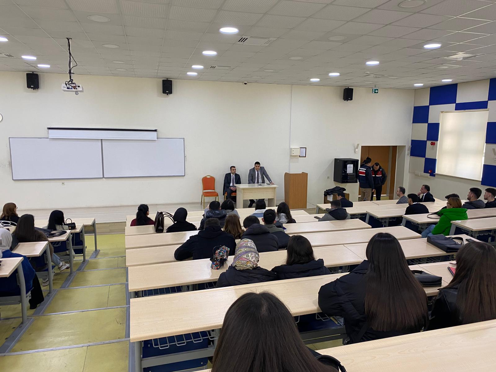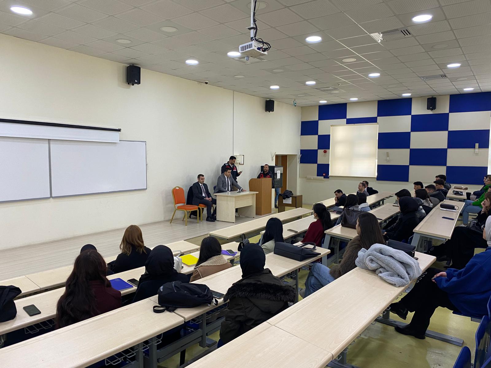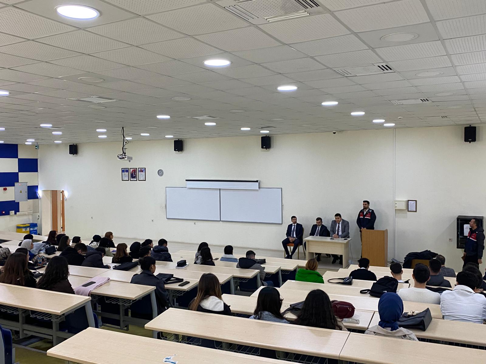 Fakültemiz öğrencilerine yönelik; Başsavcılık, Emniyet ve Jandarma işbirliği ile siber suçlar, dijital güvenlik ve IBAN kiralamanın riskleri konusunda bilgilendirme eğitimi gerçekleştirildi.