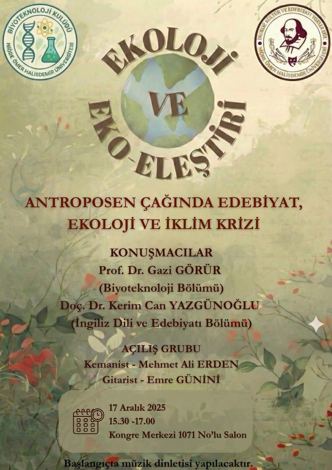 Antroposen Çağında Edebiyat ve İklim Krizi Üzerine Söyleşi Etkinlik Ayrıntıları Etkinlik Adı: Antroposen Çağında Edebiyat ve İklim Krizi Üzerine Söyleşi Etkinlik Tarihi: 17.12.2025 - 10.03.2028 Etkinlik Türü: Söyleşi Son Güncelleme Tarihi : 16.03.2026