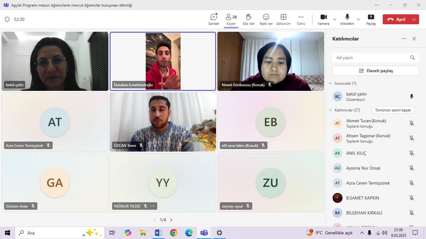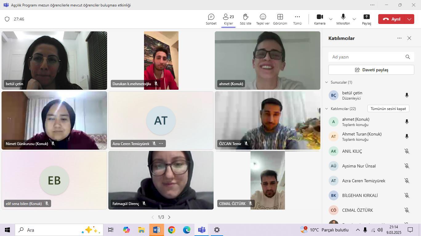 Gerçekleştirilen bu etkinliğin; sektörde ya da projelerde yer almış olan mezun öğrencilerimizin deneyim ve tecrübelerinden yararlanılarak şu an eğitim gören öğrencilerimizin onlarla iletişim içerisinde de olmaları sağlanarak mevcut öğrencilerin hedeflerini doğru bir şekilde ortaya koymalarına fayda sağladığı düşünülmektedir. Etkinlik içerisinde mezun öğrencilerin hangi kurumlarda olduğu, proje kamplarında neler yaşadıkları, yurtdışı deneyimleri, karşılaştıkları sorunlar, öğrencilik yaşantılarına geri dönseler neyi veya neleri yapıp yapmayacakları ve mevcut öğrencilerin merak ettikleri üzerine karşılıklı konuşmalar gerçekleştirilmiştir. Bu etkinlik sayesinde mezun öğrenciler ve mevcut öğrenciler arasında bir platform oluşturulmuştur. Bu platform sayesinde iş imkanları ve sektör fırsatları vb. konularda paylaşımlar yapılması, Niğde Ömer Halisdemir Üniversitesi Aşçılık Programı öğrencileri olarak okul sonrasında da iş birliği içerisinde hareket edilmesi ve bu etkinliğin her iki yılda bir düzenli aralıklarla yapılması koordinatörün hedefleri arasındadır.