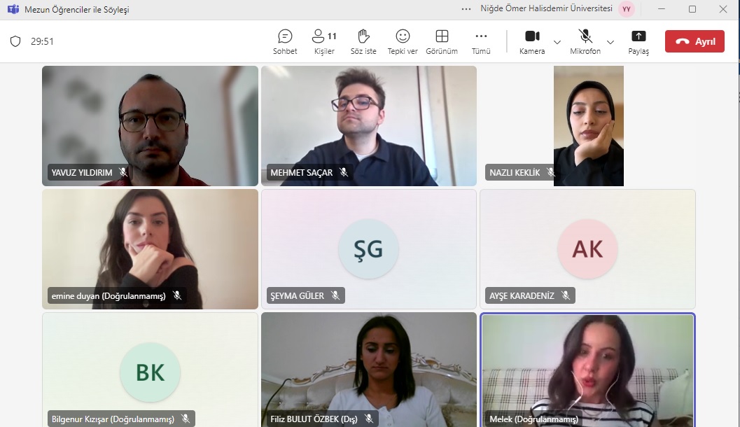 Katılımcılar, geniş yelpazede tecrübe ve bilgiyi paylaşma imkanı buldu. Etkinlik, alanında başarılı mezunların çevrimiçi katılımlarıyla başladı. Mezunlar, iş dünyasında yaşadıkları deneyimleri ve sektörde edindikleri bilgi birikimini öğrenci ve mezun arkadaşlarıyla paylaştı. Mezun konuşmacılar, kariyerlerine yön veren zorlukları, elde ettikleri başarıları ve iş hayatında fark yaratmak için uyguladıkları stratejileri aktararak genç mezunlara yol gösterici bir rehber sundu.