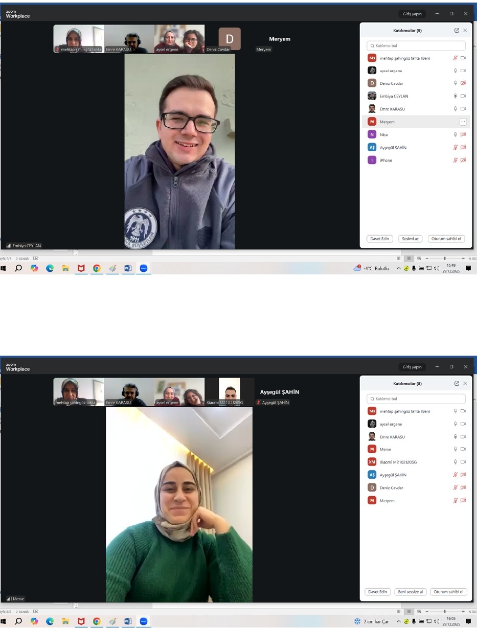 İlk ve Acil Yardım Programı mezun öğrencileri ile akademik personelin katılımıyla 29.12.2025 tarihinde saat 15.00'te, Zoom uygulaması üzerinden çevrim içi Mezun Öğrenci Buluşması gerçekleştirilmiştir.