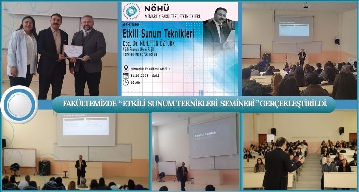Fakültemiz, öğrencilerin akademik ve profesyonel yaşamlarında ihtiyaç duyacakları sunum becerilerini geliştirmeye yönelik "Etkili Sunum Teknikleri" konulu seminer düzenlendi. AMFİ-1 salonunda 31. 03. 2026 tarihinde gerçekleştirilen etkinliğin konuşmacısı, Niğde Zübeyde Hanım Sağlık Hizmetleri Meslek Yüksekokulu öğretim üyesi Doç. Dr. Muhittin Öztürk oldu.