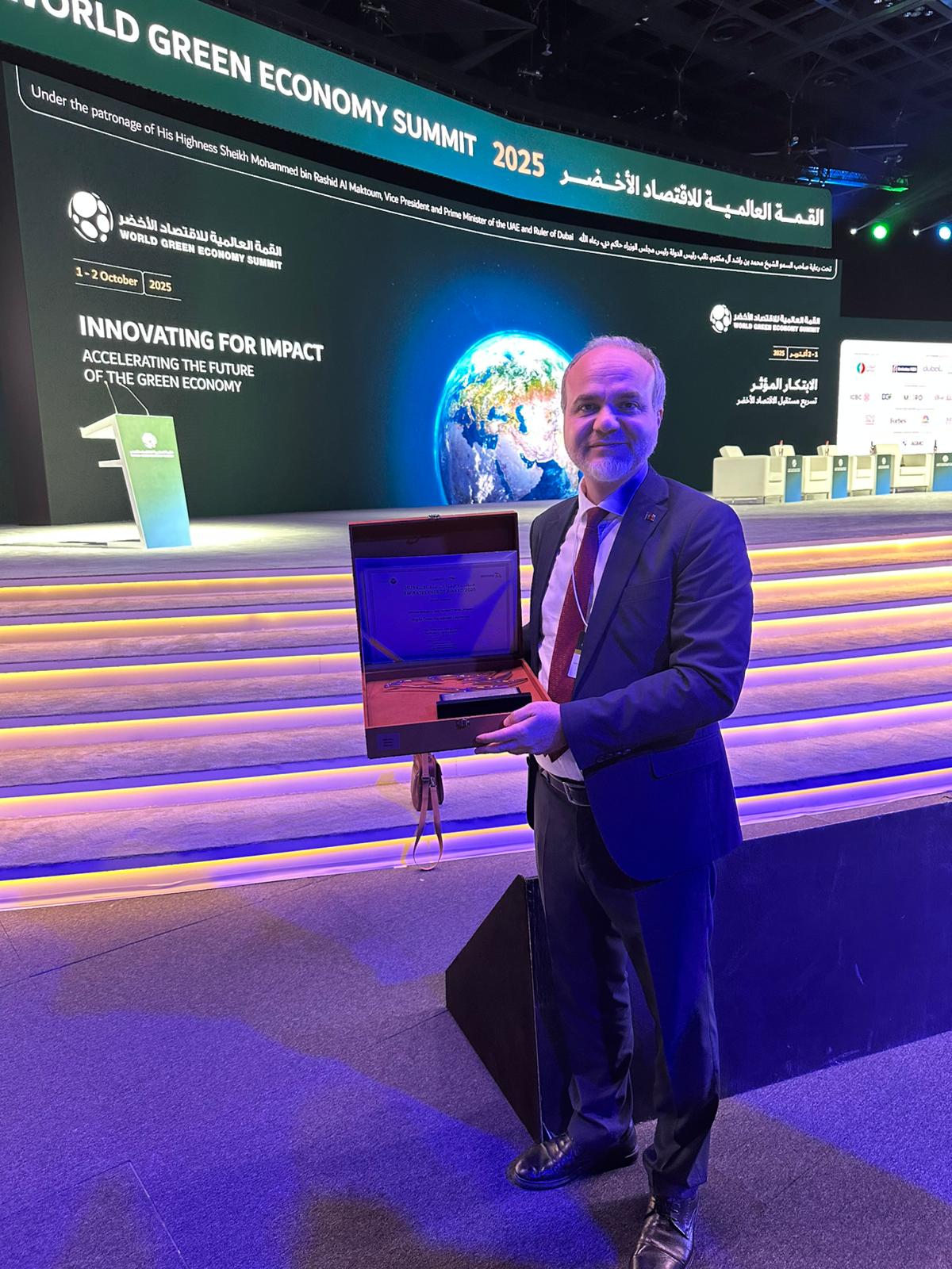 Ödül töreni, Dubai Yüksek Enerji Konseyi ev sahipliğinde Dubai Dünya Ticaret Merkezi’nde 2025 Dünya Yeşil Ekonomi Zirvesi’nde (World Green Economy Summit) gerçekleştirildi. Törene, BAE Başbakanı Muhammed bin Raşid Âl-i Mektum, BAE Enerji Bakanı Suhail bin Mohamed Al Mazroui, BAE İklim Değişikliği ve Çevre Bakanı Amna Al Dahak Al Shamsı’nın katıldığı programa Üniversitemizi temsilen Rektörümüz Prof. Dr. Hasan Uslu ve Prof. Dr. T. Nejat Veziroğlu Temiz Enerji Uygulama ve Araştırma Merkezi Müdürü Prof. Dr. Bora Timurkutluk katıldı. Üniversitemizin “Uygulamalı Araştırma ve Ürün Geliştirme” kategorisinde almaya hak kazandığı ödül, Rektörümüz Uslu’ya takdim edildi.