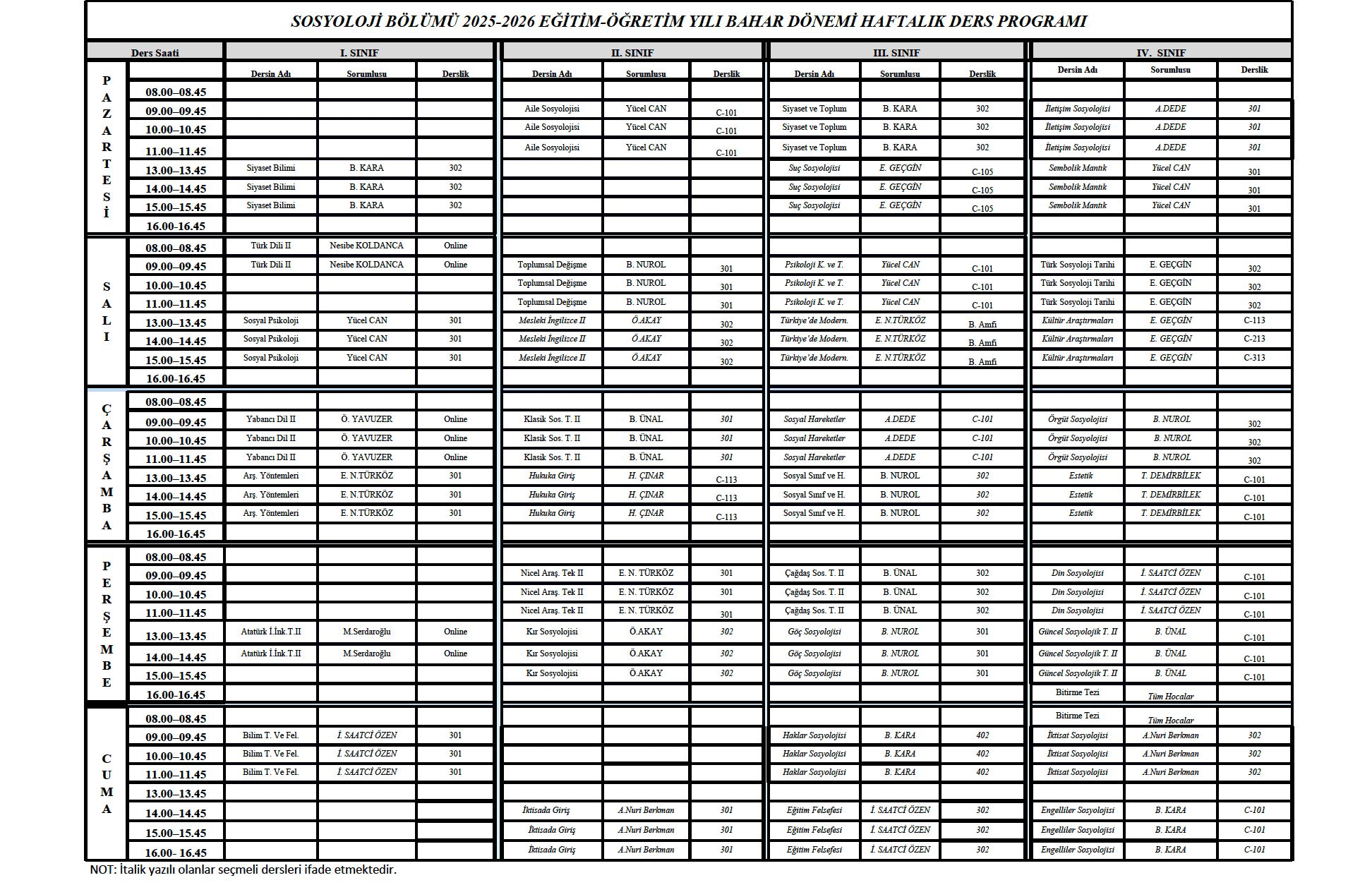 LİSANS 2025-2026 Bahar Dönemi Ders Programı