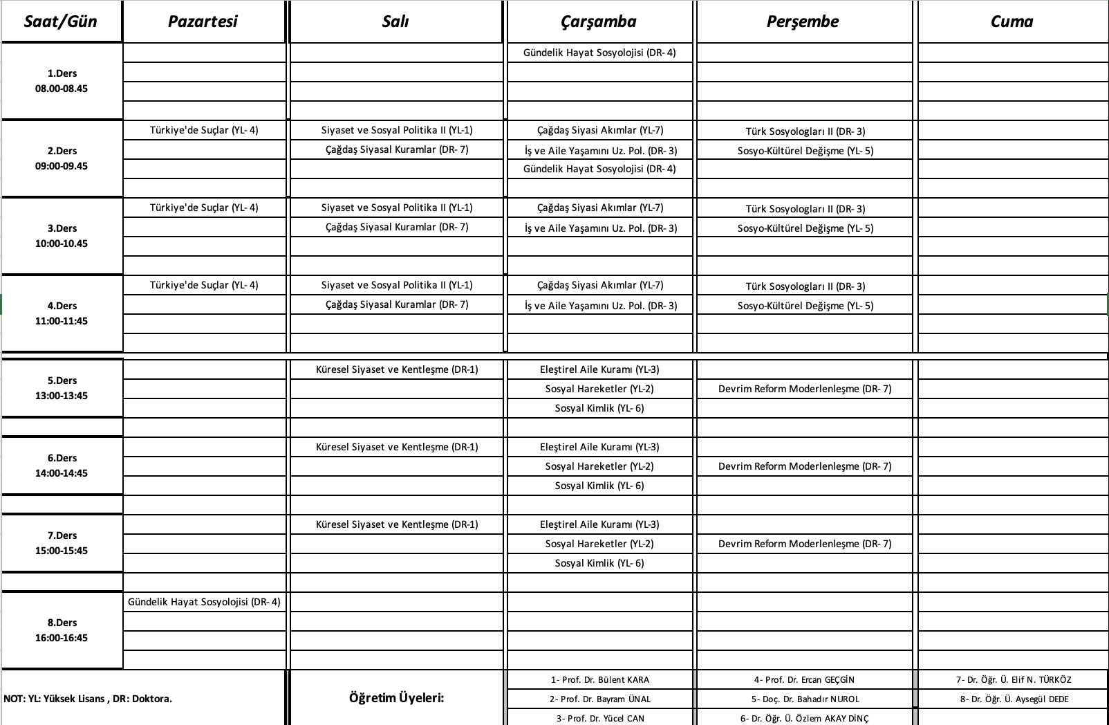 LİSANSÜSTÜ YL-DR 2025-2026 Bahar Dönemi Ders Programı Duyurular 03.02.2026 Son Güncelleme Tarihi : 06.02.2026
