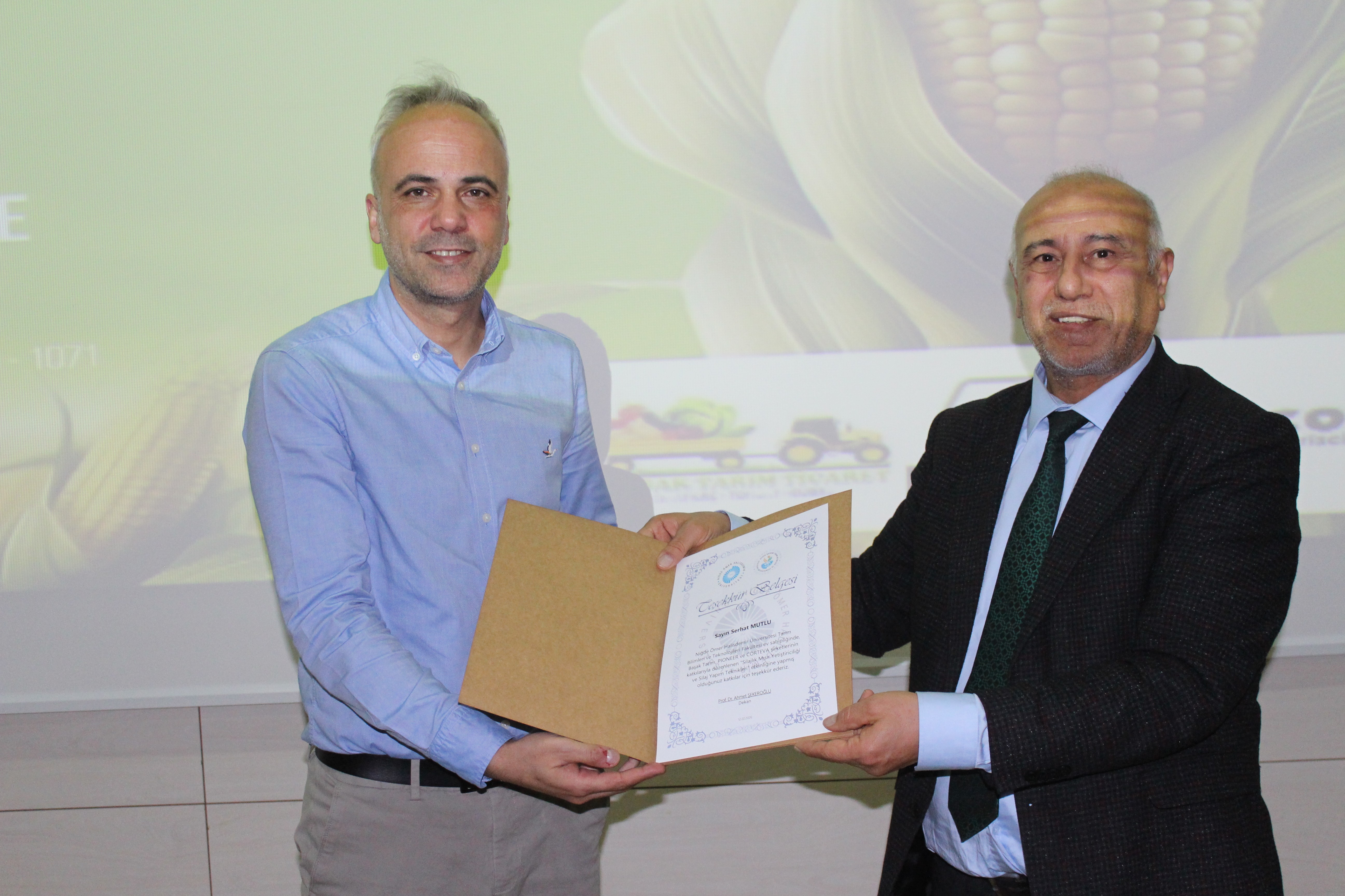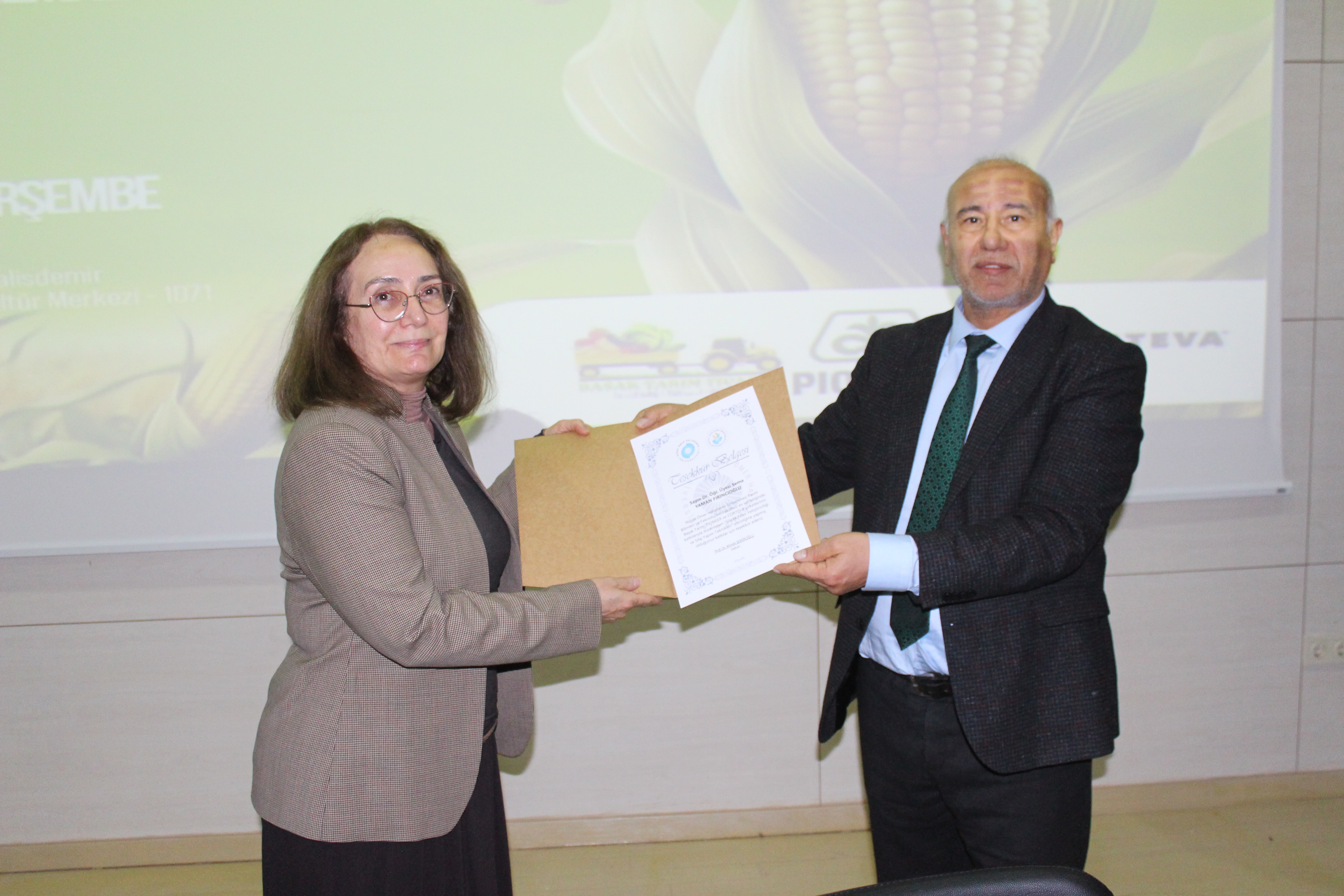Bölgedeki mısır üreticilerinin ve teknik personelin yoğun ilgi gösterdiği, teorik bilgilerin sahadaki pratik sorunlarla harmanlandığı interaktif soru-cevap bölümünün ardından; Prof. Dr. Ahmet Şekeroğlu tarafından panelistlere değerli katkıları için teşekkür belgesi takdim edilerek üniversite-sanayi iş birliğinin bölge tarımına katkısı vurgulanmıştır.