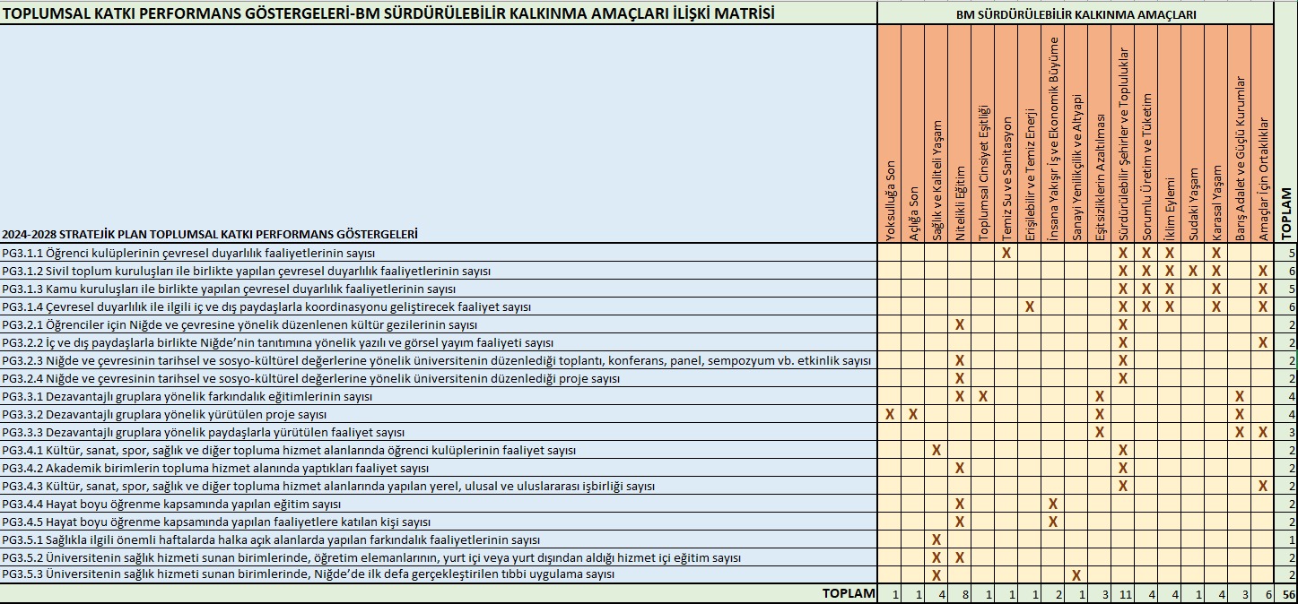 Performans Göstergeleri-BM Sürdürülebilir Kalkınma Amaçları Matrisi